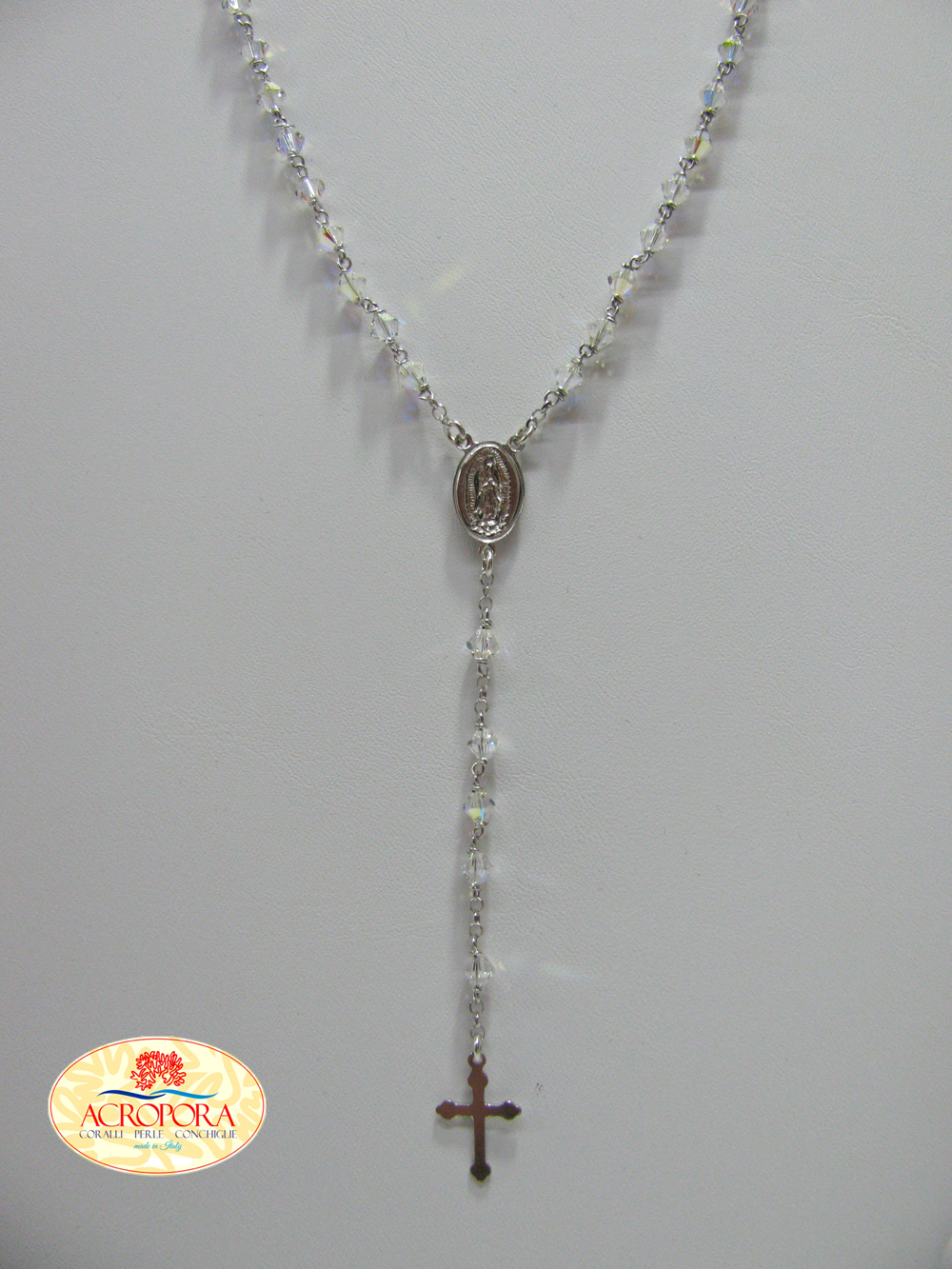 Collana rosario swarowsky bianco con chiusura in argento 925
